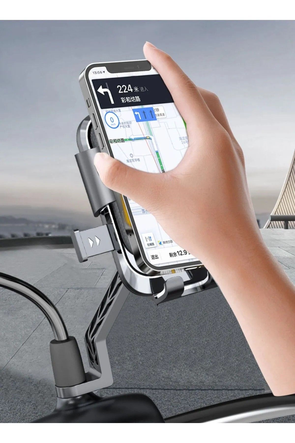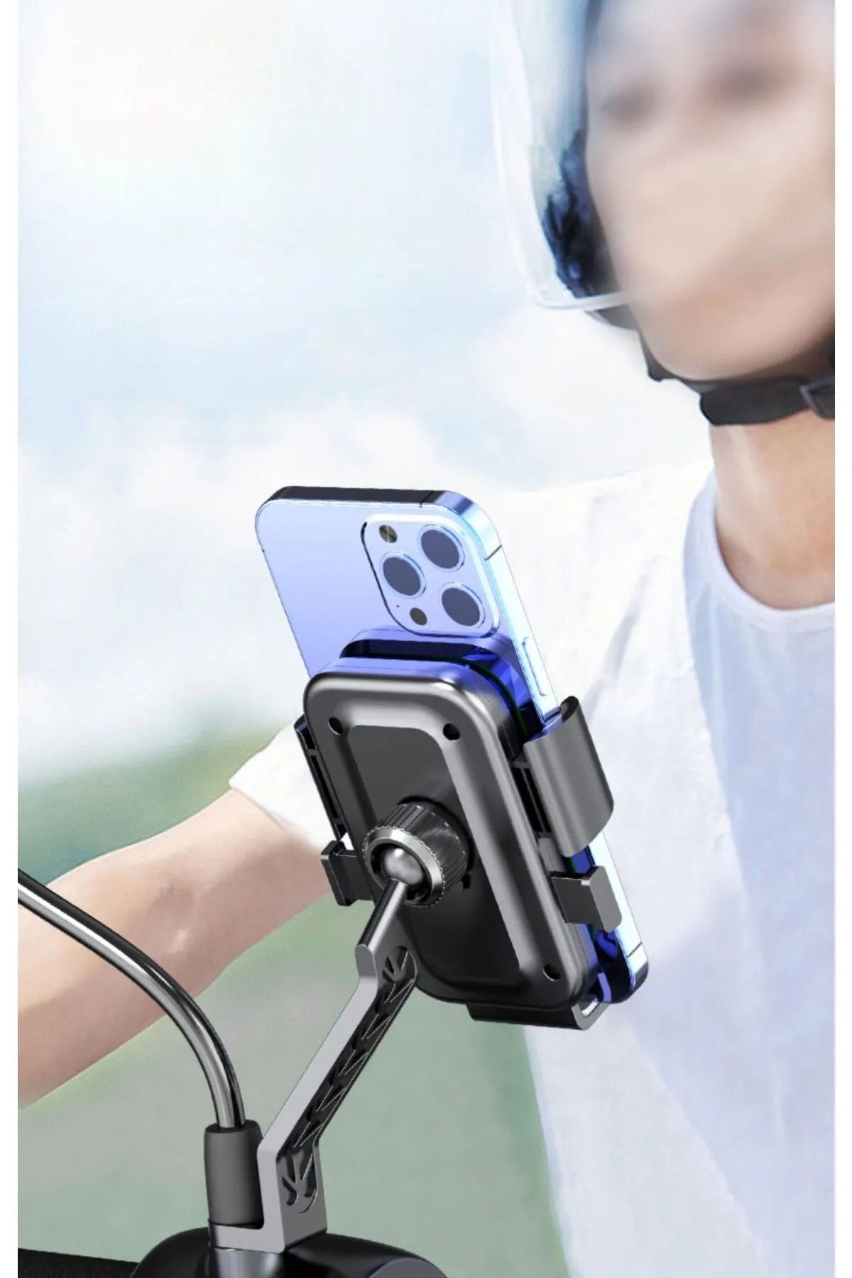 Ayarlanabilir Bisiklet Scooter Motosiklet Otomatik Tuşlu Motorsiklet Ayna Bağlantılı Telefon Tutucu